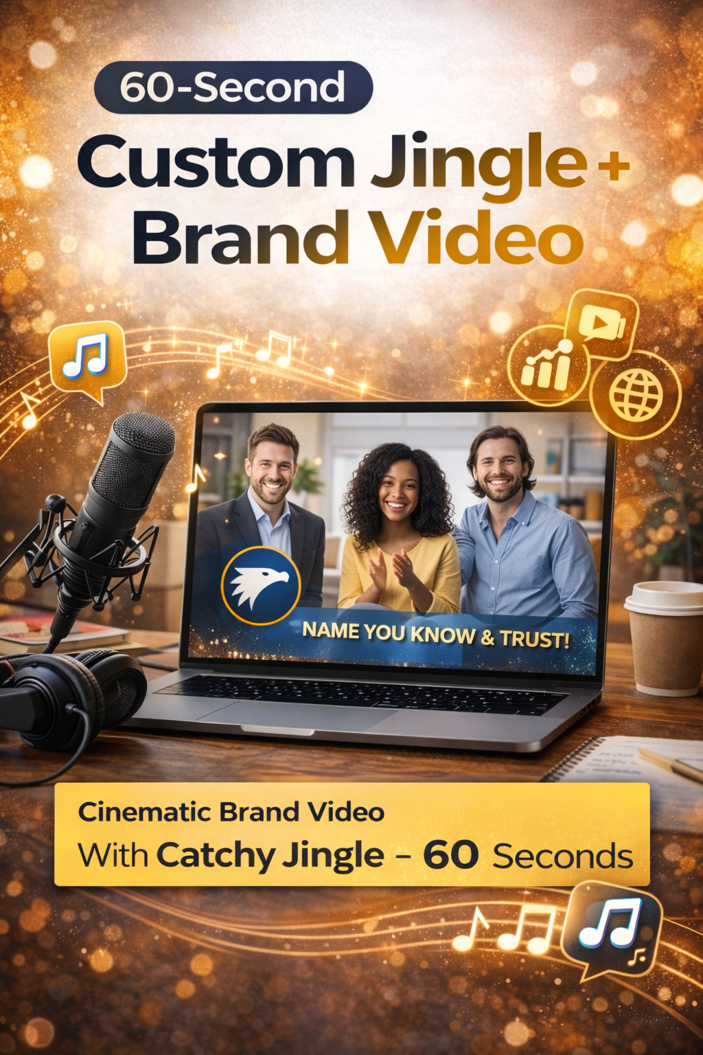 This premium package combines a professionally written and produced 60-second jingle with a cinematic brand video that reflects your message, energy, and audience.